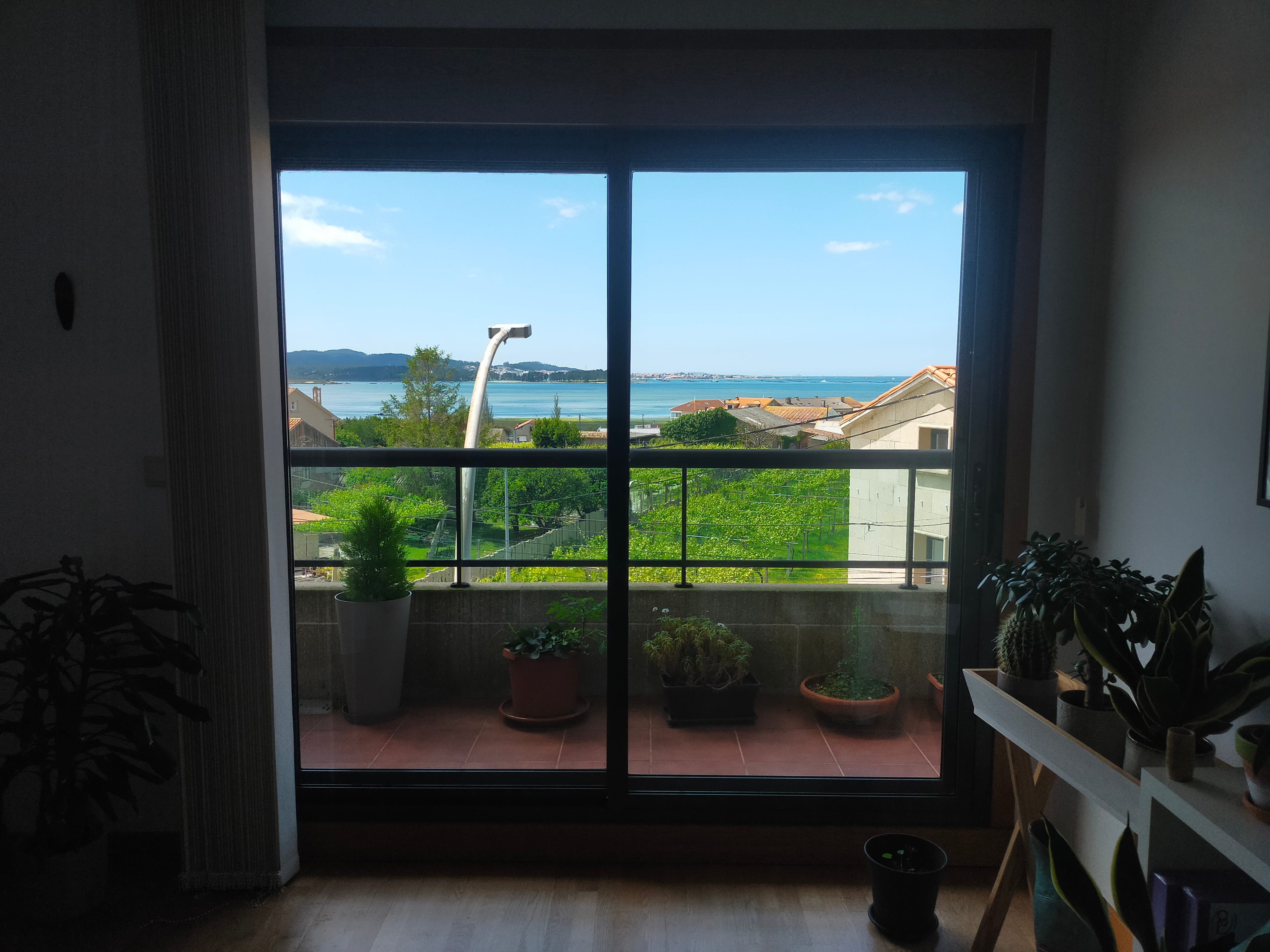 Durante la semana cenamos pronto, en horario europeo, y en la cocina. Ahora mismo vivimos un piso muy chulo que tiene un balcón con vistas al mar, pero por algún extraño motivo solemos dirigirnos a los alrededores de la nevera como polillas a la luz. En verano (o cuando el buen tiempo llega a Galicia) sí aprovechamos más la terraza, pero me temo que, salvo por las vistas la ría desde el salón, esta parte del piso está desaprovechada.